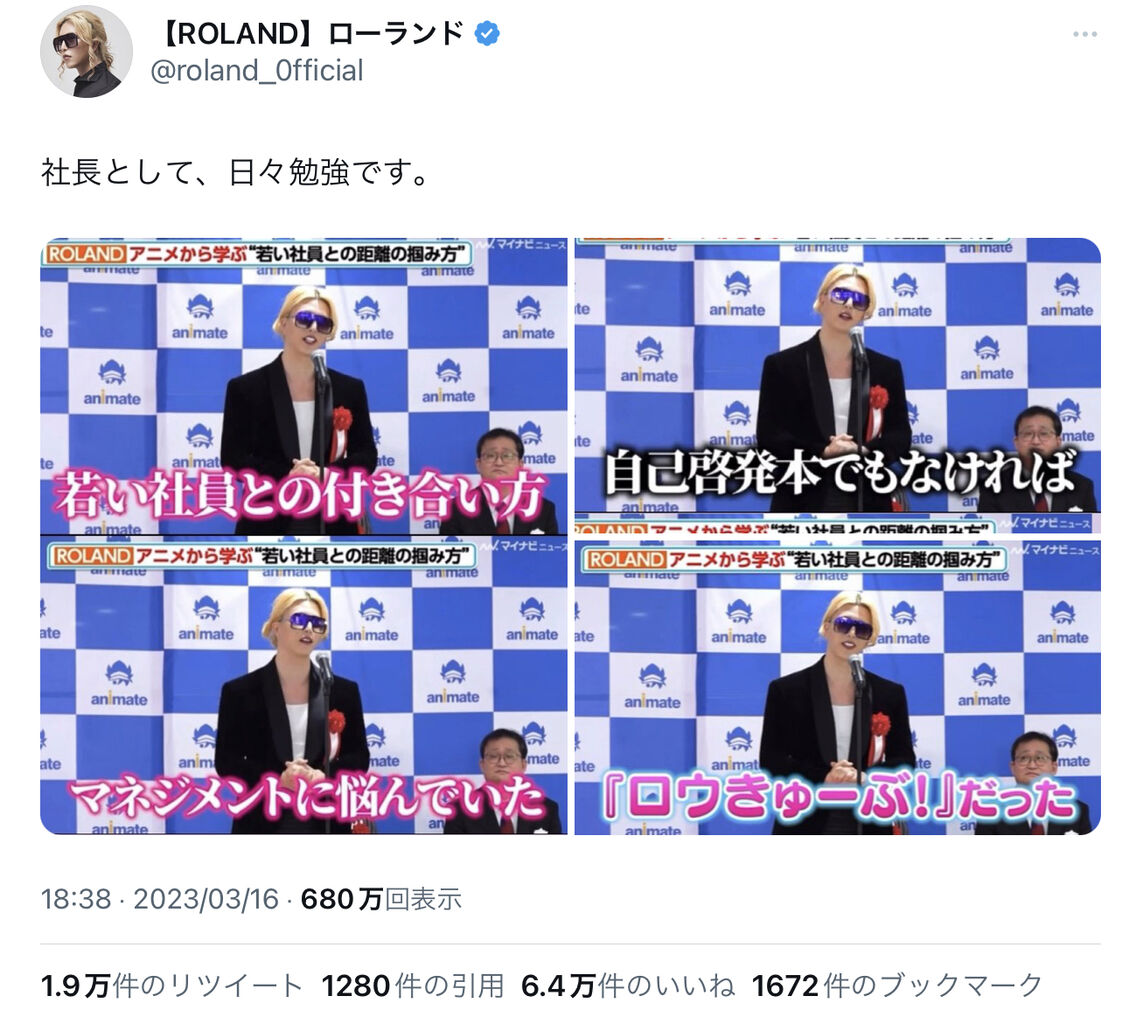 この投稿にファンからは「3人のお客様と2000人の元フォロワーがローランド様を失った」「ただのロリ作品と見てる人はまじで悔い改めて欲しい」「庶民的(?)なところもあるんだな」「格好いい」「どれだけ登り詰めてもオタクのマインド忘れない辺り」「カッコイイ人がアニメ好き」「むしろ好感持った」などの声が寄せられて
