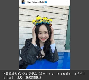 黒のジャケット姿で頭にミニオンズのマスコットを乗せた姿を複数掲載し、ファンから「激カワ」「最高に可愛い!」「USJかな」「めっちゃ混んでませんでした?」「益々、美人さん」「早大生だな望結ちゃん、おめでとう」などの声が寄せられた。本田望結が4月から早稲田大学社会科学部に進学予定。