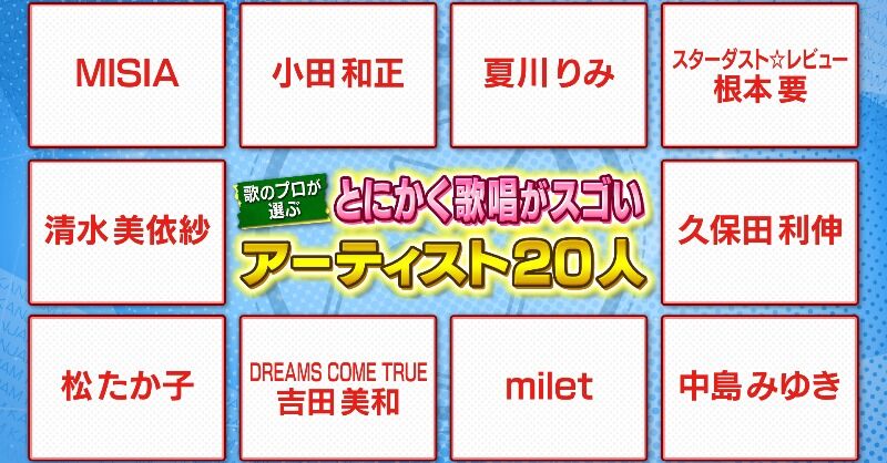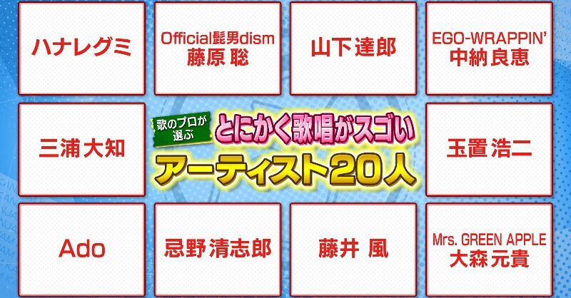 【関ジャム】プロが厳選した「とにかく歌唱がスゴいアーティスト20人」発表される