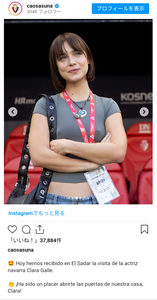 スペイン出身の女優兼モデルであるクララ・ガルさんは、23日にオサスナのホームで行われたラ・リーガ第6節セビージャ戦(△0-0)を現地観戦。スタジアムを訪れた際の写真をオサスナの公式インスタグラム(@caosasuna)が複数アップしたところ、彼女がブラジャーを着けていないことに大きな注目が集まった。