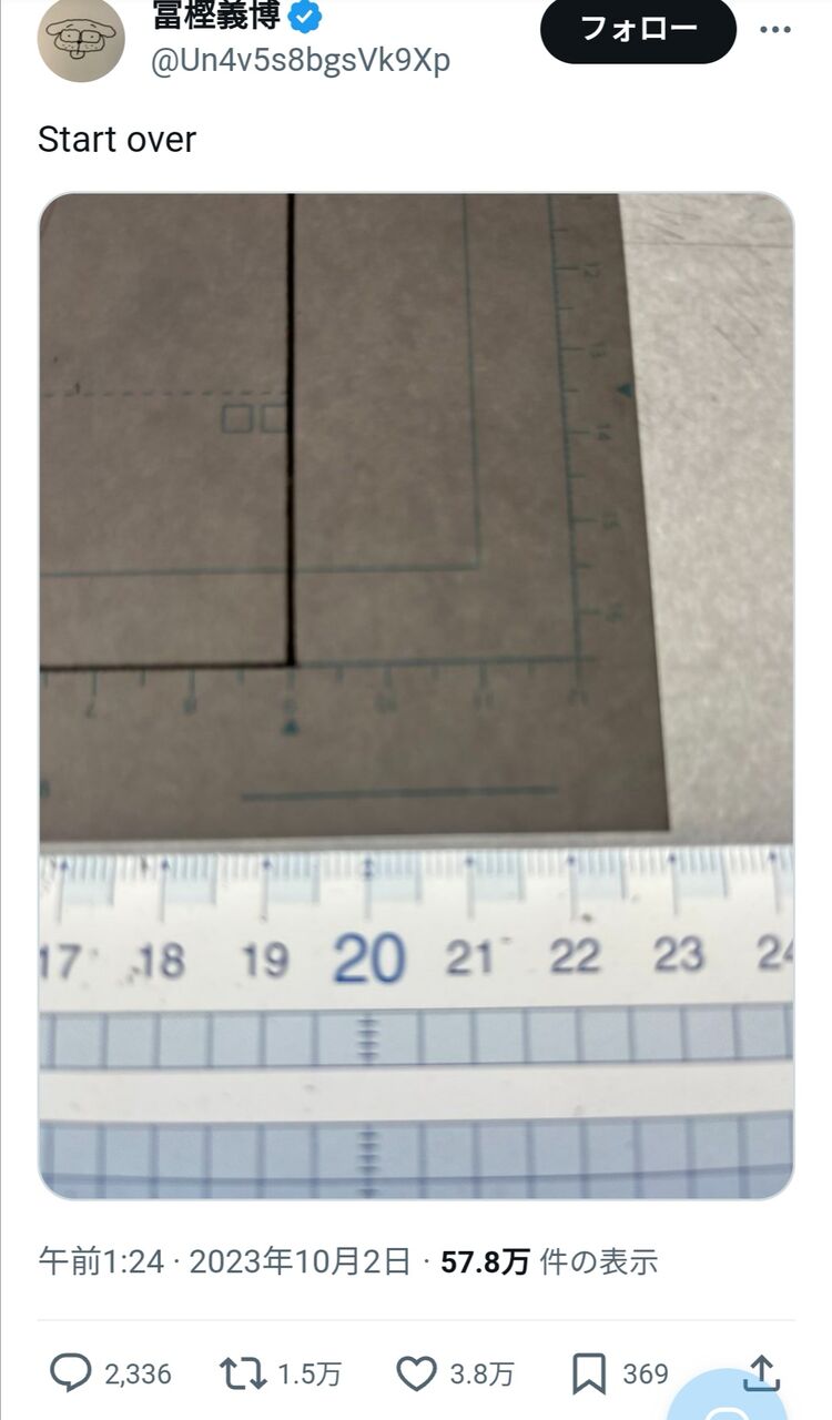 SNSでは「Start over」と原稿の一部と定規を公開。投稿から約10分でXでは「冨樫先生」がトレンド入りした。(午前1時30分ごろ)