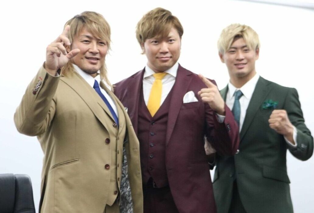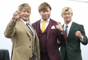 今年6月のオールスター戦で越境タッグを組んだ新日の棚橋弘至、全日の宮原健斗、ノアの清宮海斗