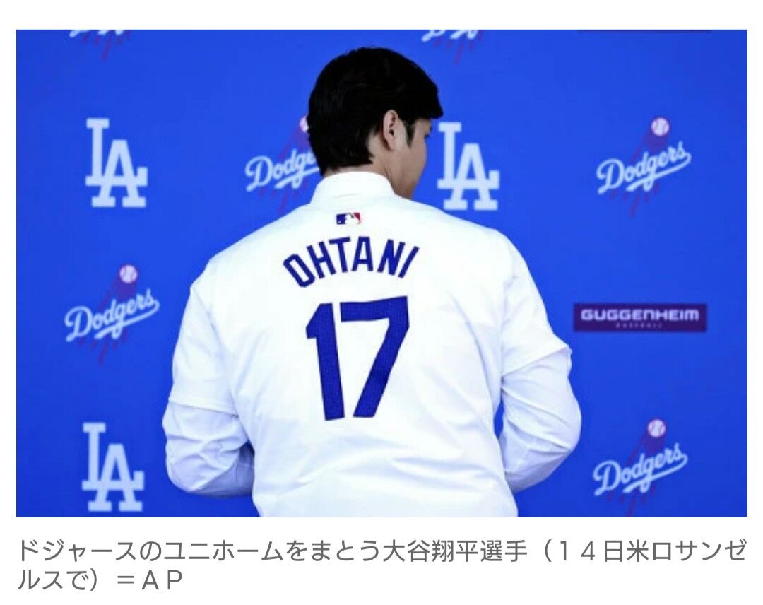 同社は11日、大谷選手の背番号「17」が入ったドジャースのユニホームの予約販売を174・99ドル(約2万5000円)で開始。これまでの48時間以内の売上高トップはサッカーのリオネル・メッシ選手だった。