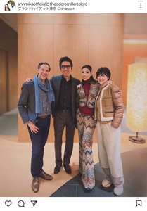 「先日、布袋寅泰さん今井美樹さんご夫妻と、夫テディと久しぶりに4人が揃って撮影」と書き出すと、布袋、今井、夫で実業家のセオドール・ミラー氏と自身の4ショットをアップ。