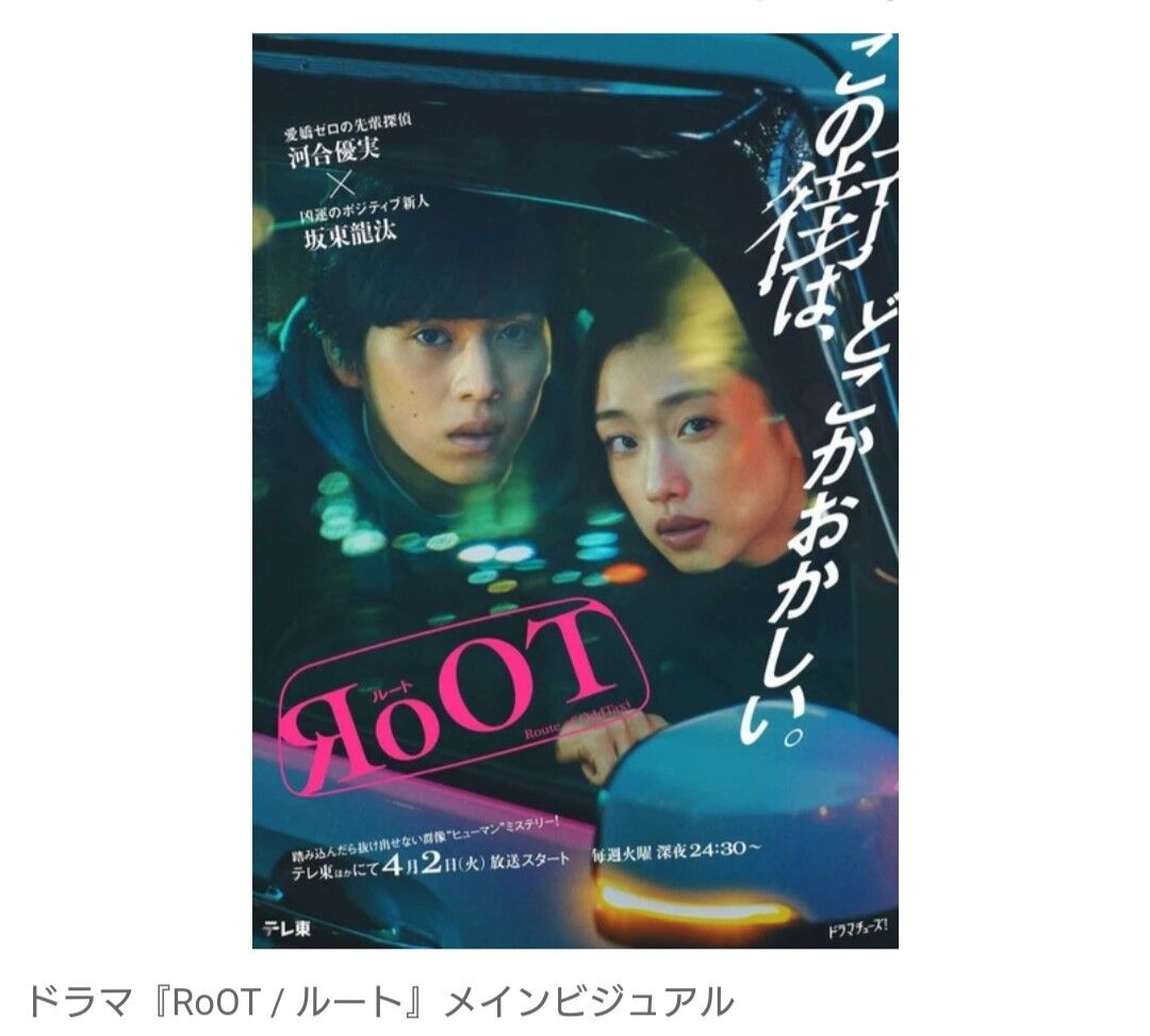 https://youtu.be/huKs2U2ycEw河合優実と坂東龍汰がダブル主演する4月2日スタートのドラマ『RoOT / ルート』(テレビ東京ほか)より、河合&坂東のニコイチバディが事件に迫る予告編に加え、オープニングテーマと主題歌が解禁された。