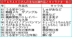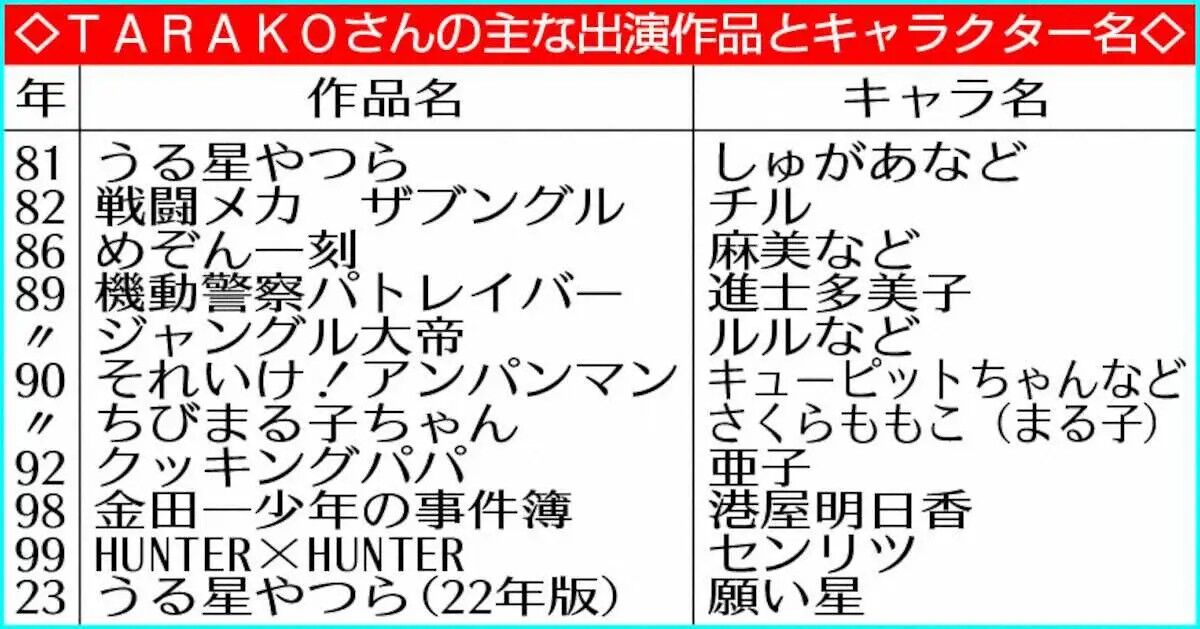 3/9(土) 1:01TARAKOさんの主な出演作品とキャラクター名