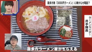 かつては日本三大ご当地ラーメンにも数えられていた喜多方市だが、近年では後継問題などが原因で横綱級の老舗が次々と閉店。あじ庵食堂の江花秀安店主は「三大ラーメンというのは先輩たちが頑張って築き上げてきた歴史だと思っているので、今後はその三大ラーメンに甘んじることなく、そういう地域色をもっと前面に打ち出していきたい」と思いを吐露。批判を真摯に受け止めながらも「喜多方ってこんなラーメン以外にもあるんだっていうのを全面的に知ってもらいたい。『この箸どこで売っているの?』『こういう器はどこにあるの?』と。そういうので他の漆器屋さんとかに流れてもらったほうが(経済が)回る。都会に行った若いやつも帰ってきて、自分の街を誇れるようにしたい」と、3000円ラーメンで考えている波及効果について語った。