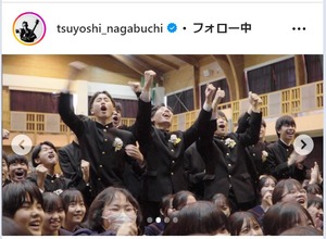 長渕は「昨日、甲南中学校の卒業式へ!シークレットLiveだ!!」と報告。続けて「卒業生、在校生、保護者の方々も、先生方もみんな一つになった。俺の家族みたいな気持ちだ!! 大声でみんなで歌った」とつづり、花束を手に笑顔のショットや盛り上がる会場の様子などを披露した。