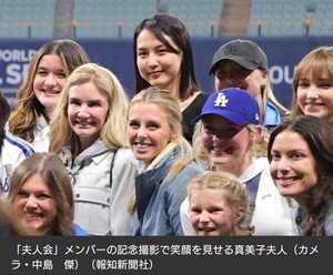 試合後には両軍関係者がグラウンド上に招待され、真美子夫人は各選手の夫人らで集まる「夫人会」のメンバーで記念撮影をするシーンもあった。