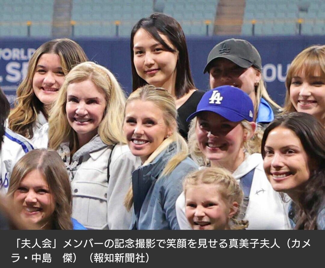 大谷翔平の真美子夫人が「夫人会」で記念撮影 試合後のグラウンドに姿見せる