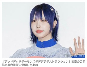 歌手の幾田りらとあのが23日、都内で行われた映画『デッドデッドデーモンズデデデデデストラクション』前章の公開記念舞台挨拶に、アニメーションディレクターの黒川智之氏とともに出席。あのはブルーヘアにイメージチェンジした姿で登壇した。
