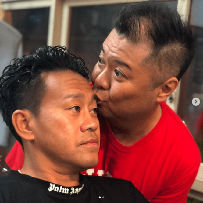この日、宮川は「#小杉とバッタリ #痩せよった #32キロも痩せよった #眉毛にチューしてきよった #帰りよった #カットして白髪染め」とのハッシュタグとともに、小杉にキスされている写真とヘアカット中らしき写真を公開。