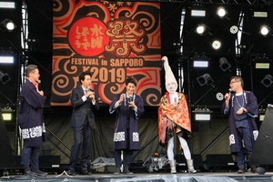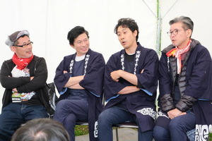 ステージイベントに登場した(左から)嬉野D、大泉、安田、鈴井、藤村D
