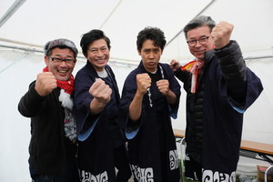 写真撮影では気合バッチリの(左から)藤村D、鈴井、大泉、嬉野D